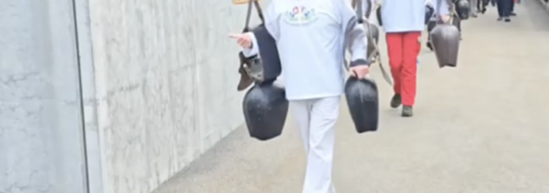 Begrüssung von Emanuel Brünisholz bei seinem Haftaustritt am 12.12.2025 in Burgdorf. Im Anschluss führt Emanuel den Trychlerumzug um die Haftanstalt Burgdorf selbst an, damit dadurch böse Geister ausgetrieben werden.